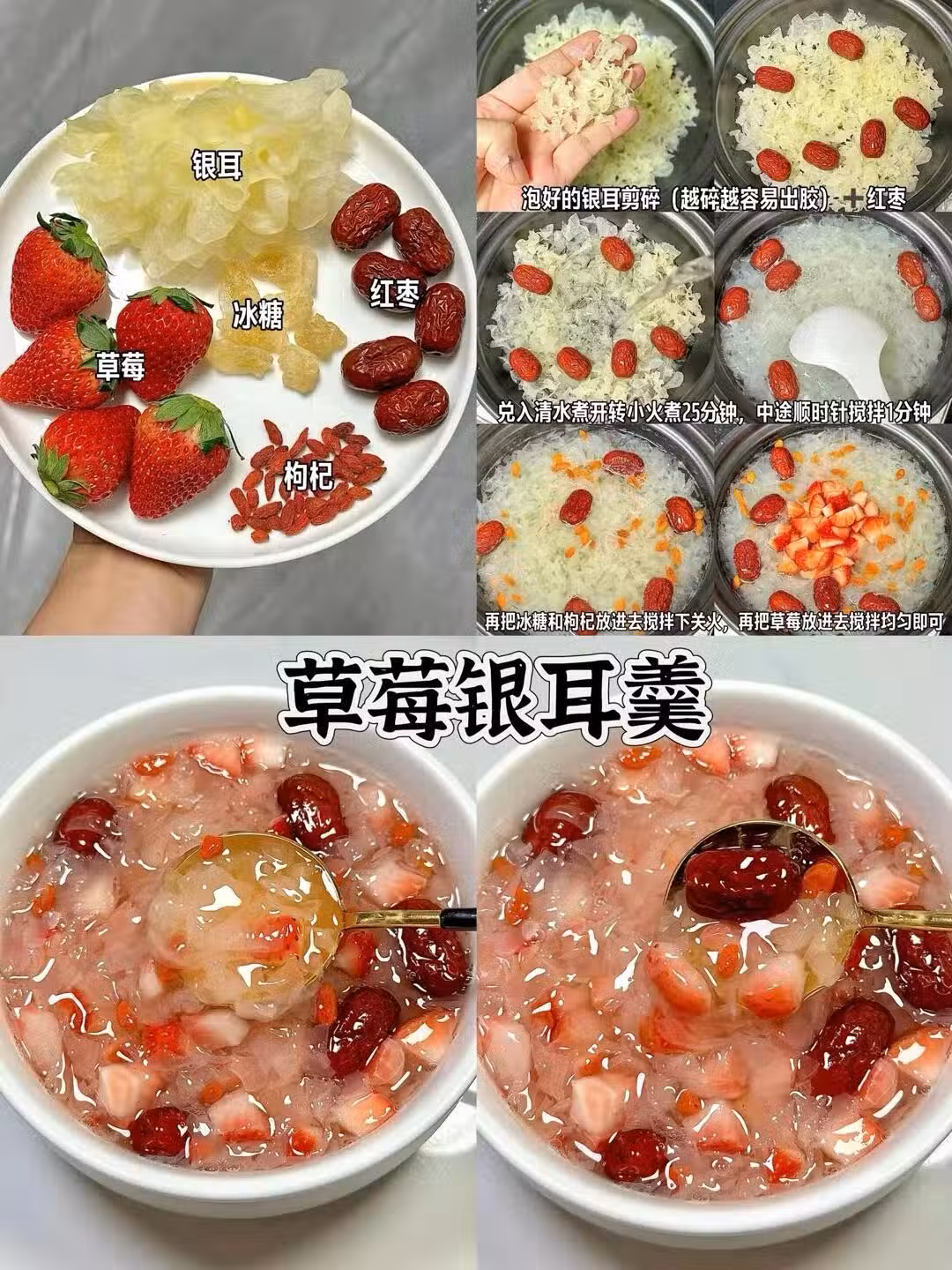 食材:草莓,銀耳,紅棗,枸杞,冰糖