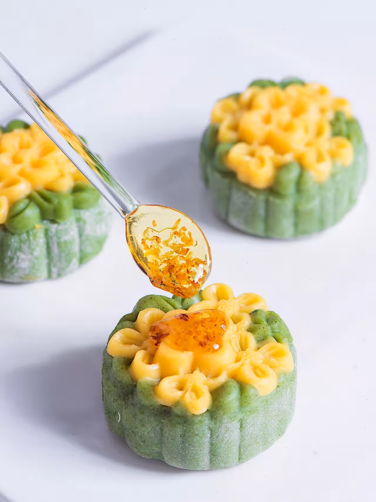 🌈高顏值超好吃的✨抹茶桂花流心月餅✨就做好啦~