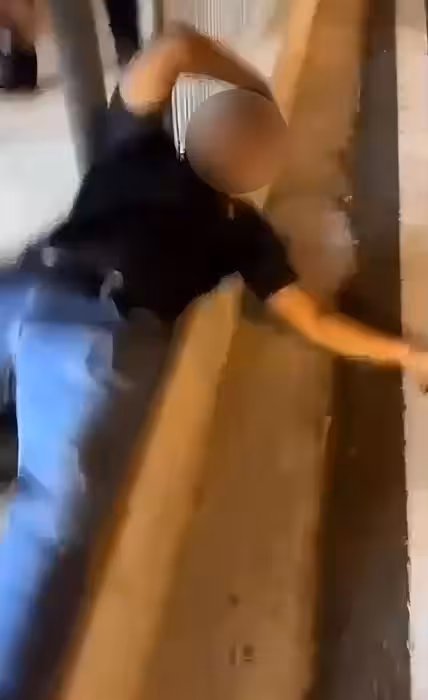 根據視頻,兩人一路扭打至某公寓門口,華裔男子打了對方一拳,後者不堪衝擊力向後摔倒,頭部正好撞傷柱子,瞬間脫力無法起身。