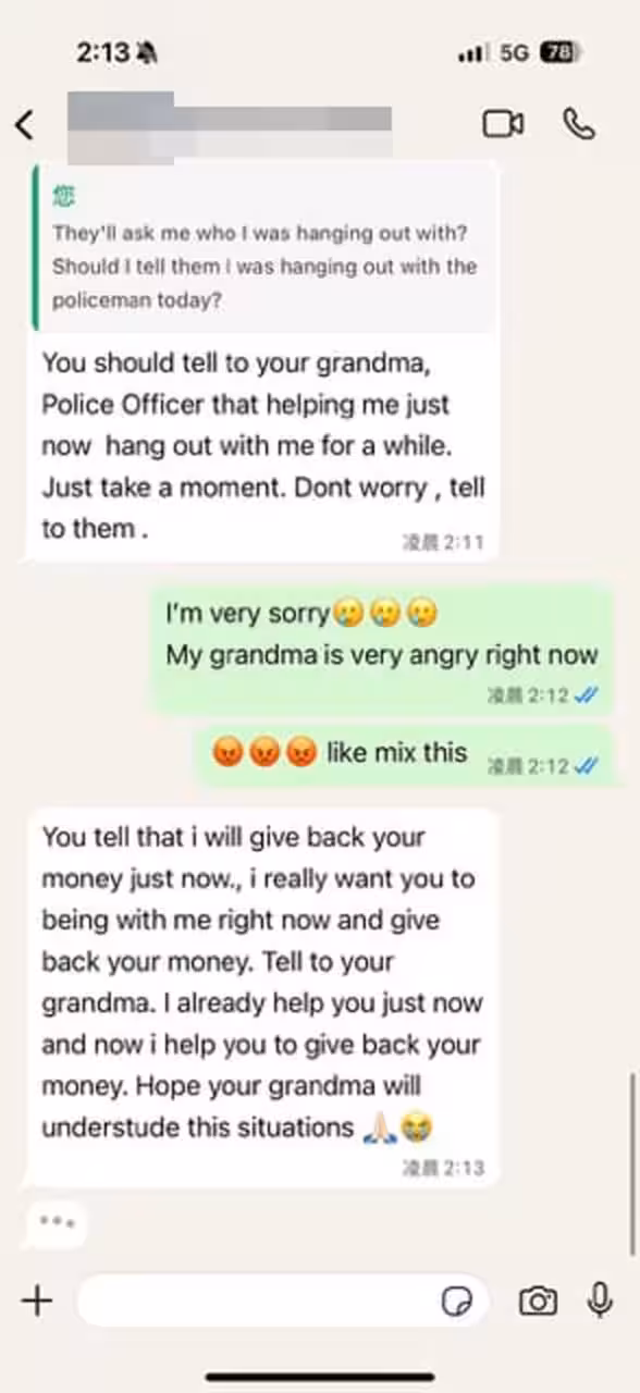 她聲稱,對方威脅若不繳交1萬令吉罰款,就將她上銬帶回警局,還試圖帶她前往提款機取現金。由於她身上僅有零錢與信用卡,警方隨後要求她將手機語言從中文改為英文,並操作手機查看旅遊期間照片、刪除影片,甚至要求她臉部解鎖銀行app,查詢帳戶餘額,進一步施壓索錢。