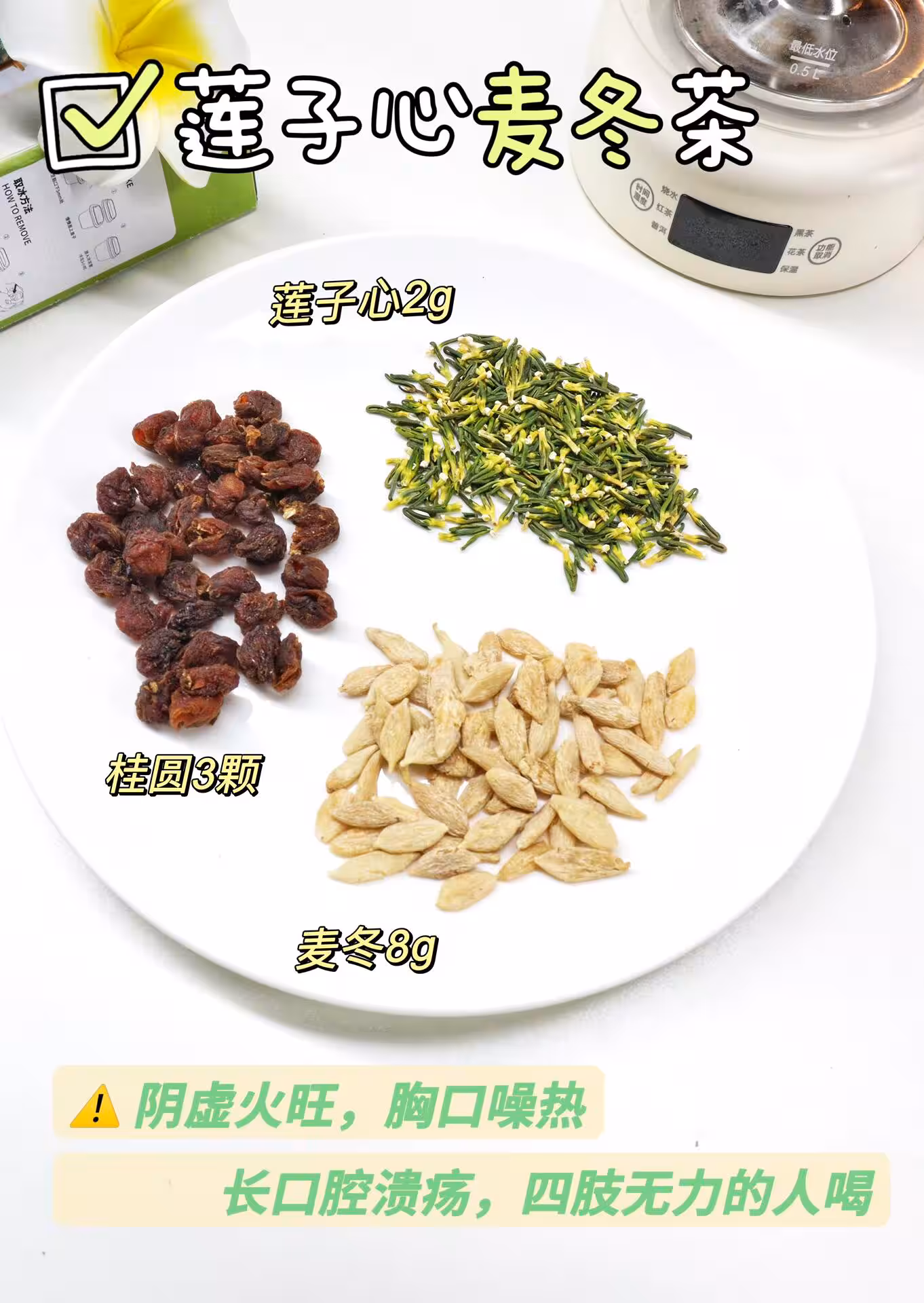 🍵配方:蓮子心2克➕麥冬8克➕桂圓3顆