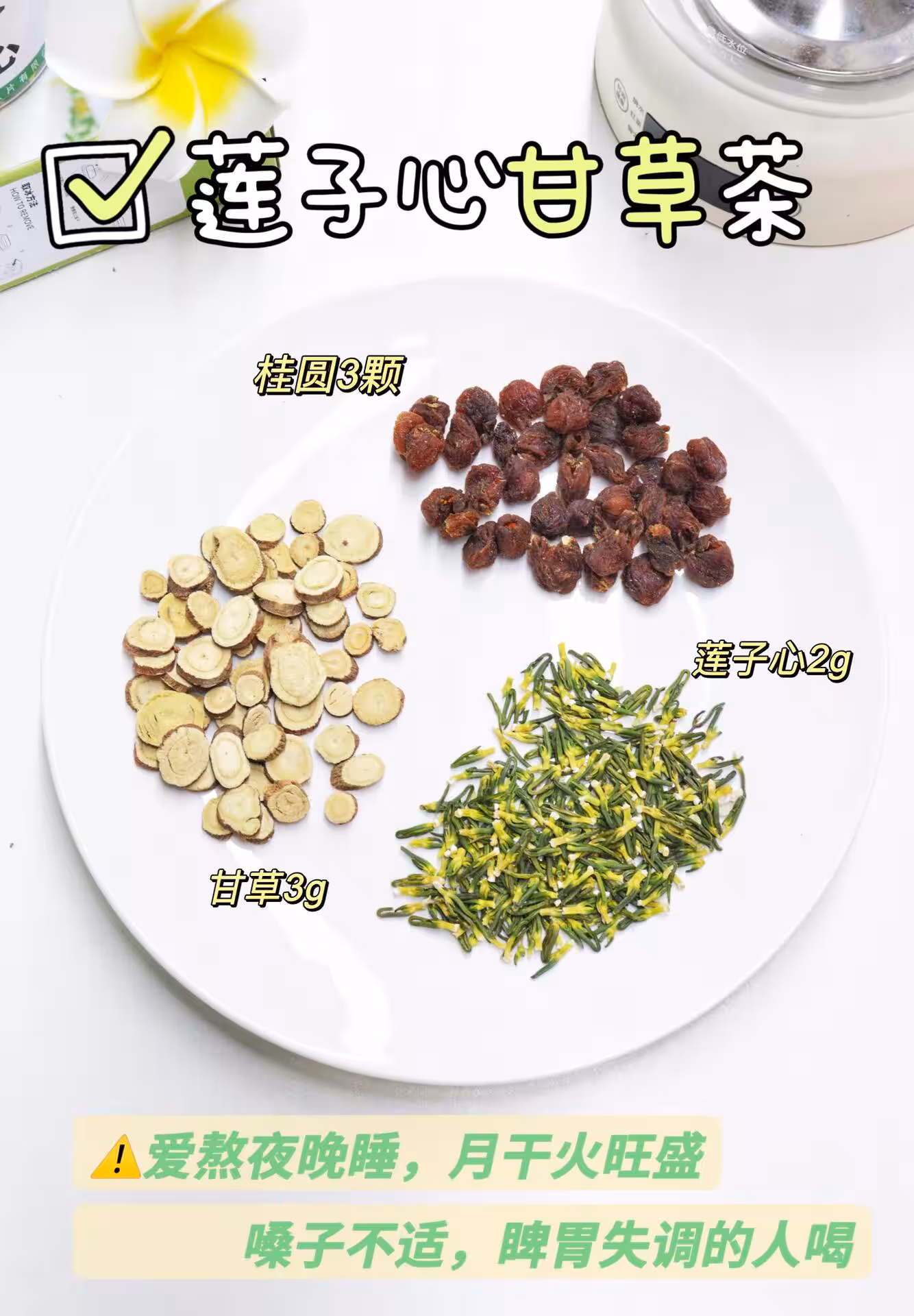 🍵配方:蓮子心2克➕甘草3克➕桂圓3顆