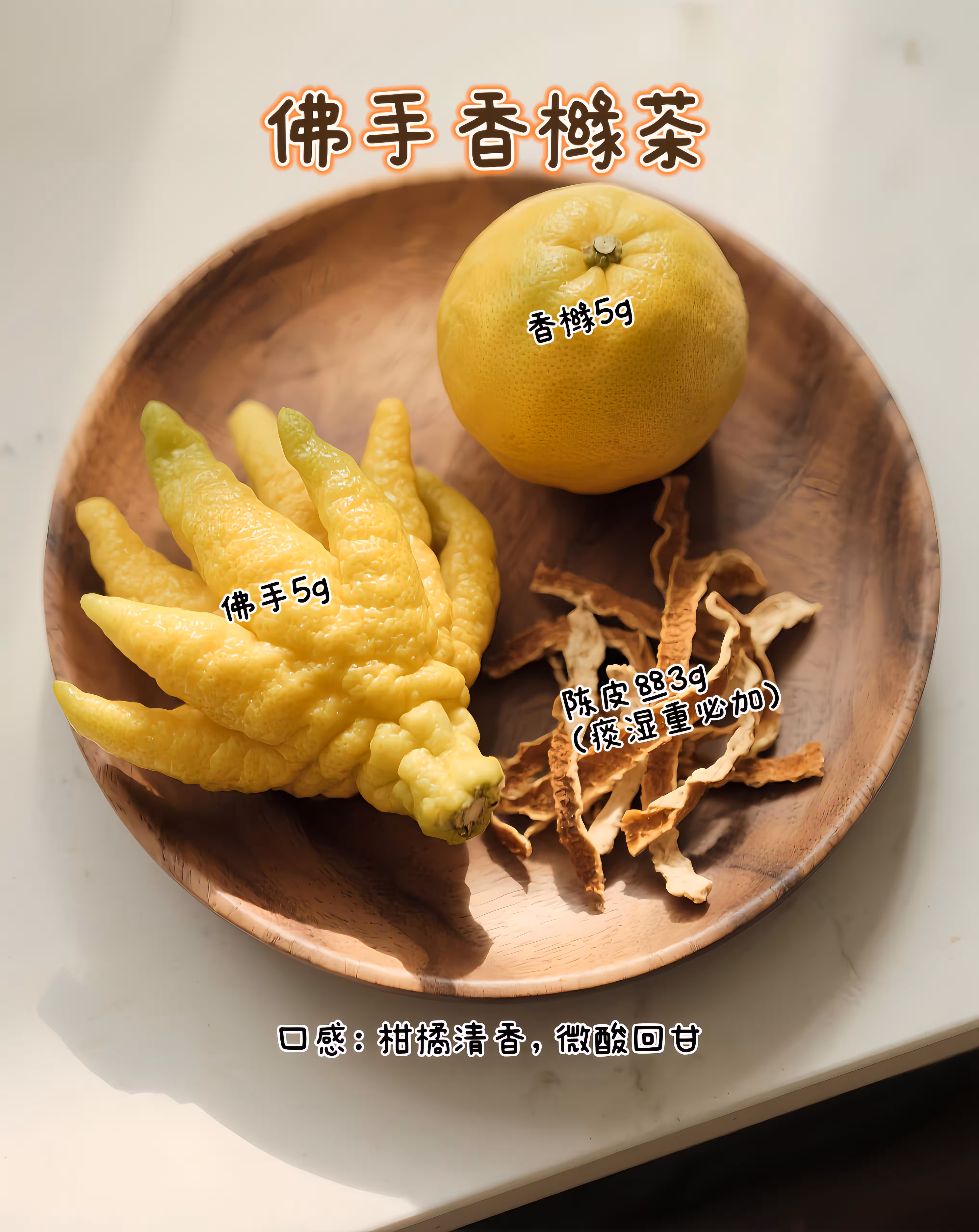 特點:佛手和香櫞自帶清新香氣,搭配陳皮更溫和,適合空調房久坐後喝一杯,身心舒暢~