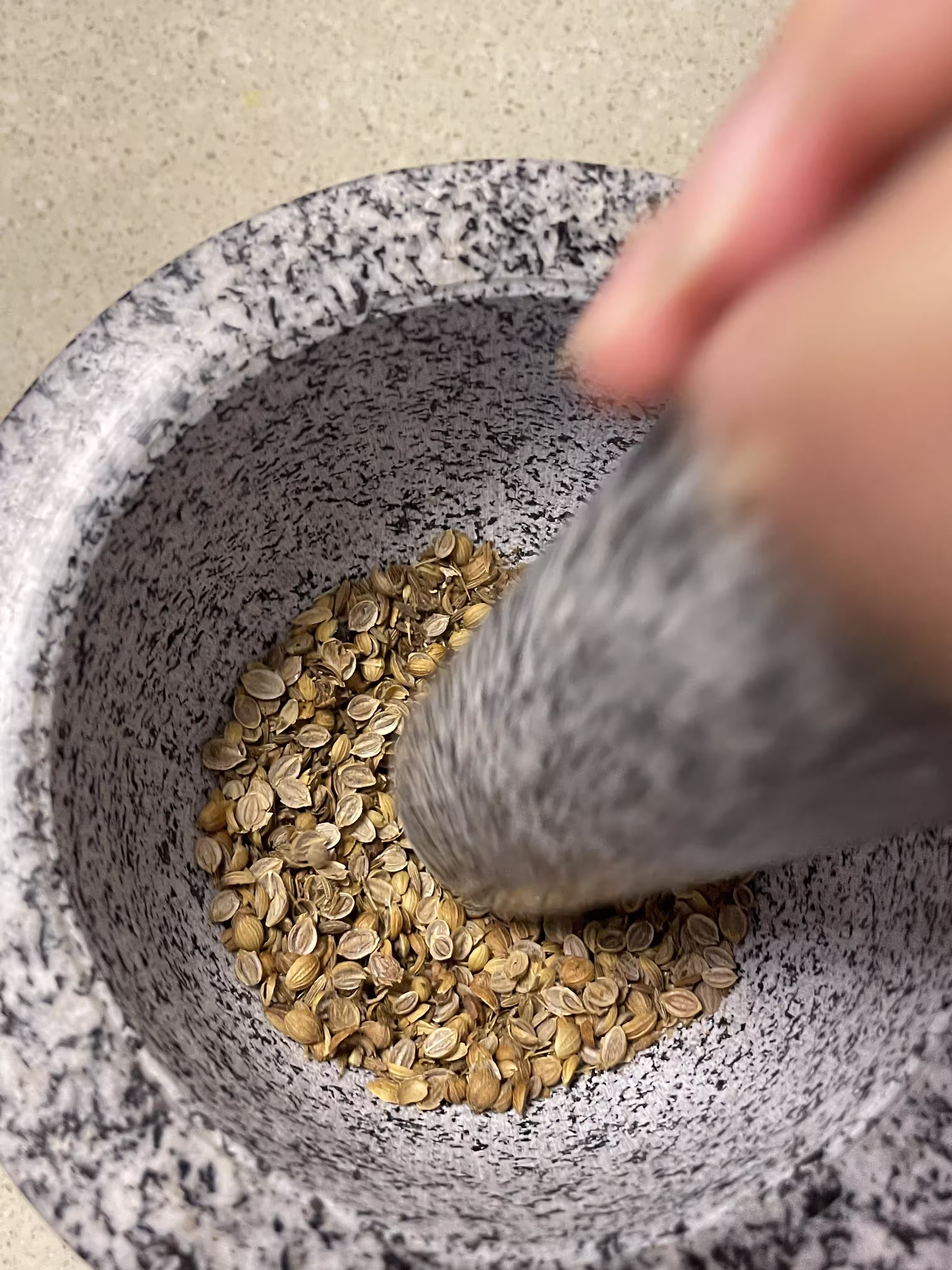 1. 用搗臼可以更好的搗出香料的香氣,沒有的話用料理機也可以替代,但是會損失一部分香味
