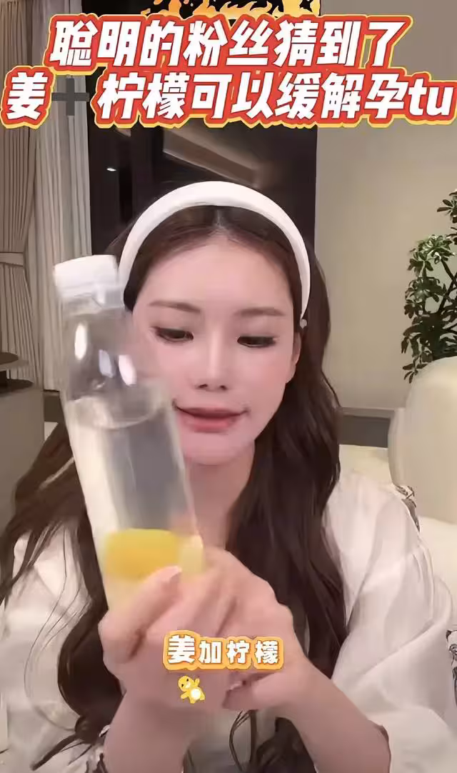 她還給大家曬出自己自製的飲品,檸檬薑茶,這就太明顯了,一般人誰會喝的下去這種又酸又辣的,只有懷孕的人才喜歡這樣的口感,來預防孕吐。