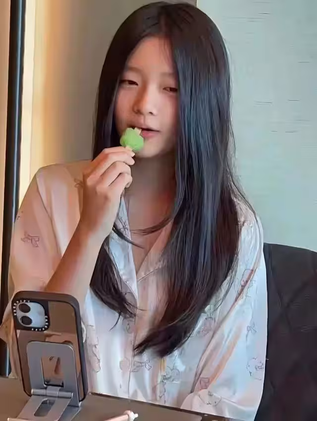 小姑娘才11歲而已,就出落的如同出水芙蓉一般,眼睛雖然是單眼皮,但是很有辨識度,嘴唇跟媽媽更像,又是大高個,完美的繼承了父母有點。