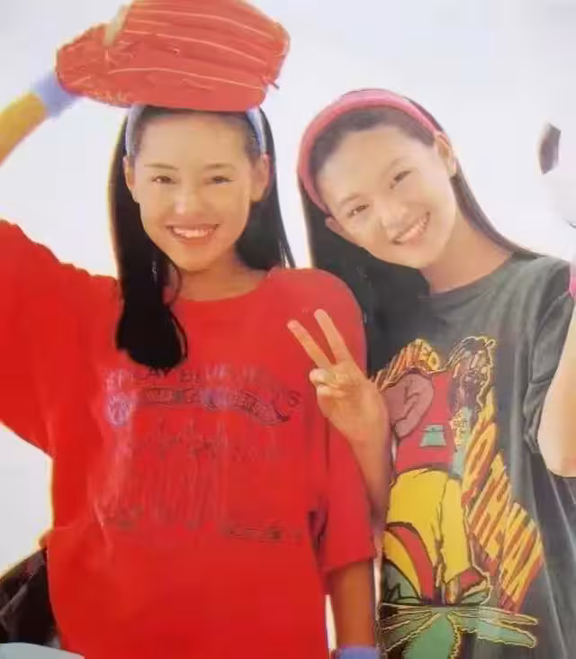 大小S年輕時候的照片,可不是這般模樣。她們穿著寬鬆T恤,戴著寬寬的發箍,披肩長發直接垂順而下,不施粉黛的臉更顯青春靚麗。