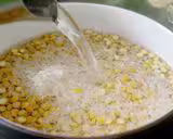 首先在一個大碗里入1 杯分裂鷹嘴豆丶1/4 杯米放入足夠的水中浸泡4小時