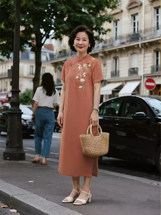 中年女人穿起過膝連衣裙,那種知性優雅是由內而外的,建議長度剛好蓋過膝蓋10到15厘米,既不會像短裙那樣顯得侷促,又比及踝長裙多了幾分利落。這個長度的優勢在於能巧妙遮住大腿贅肉,露出纖細的小腿,搭配高跟鞋還可以視覺上拉長腿型,走路時裙擺隨著步伐輕輕晃動,自帶溫婉氣質。