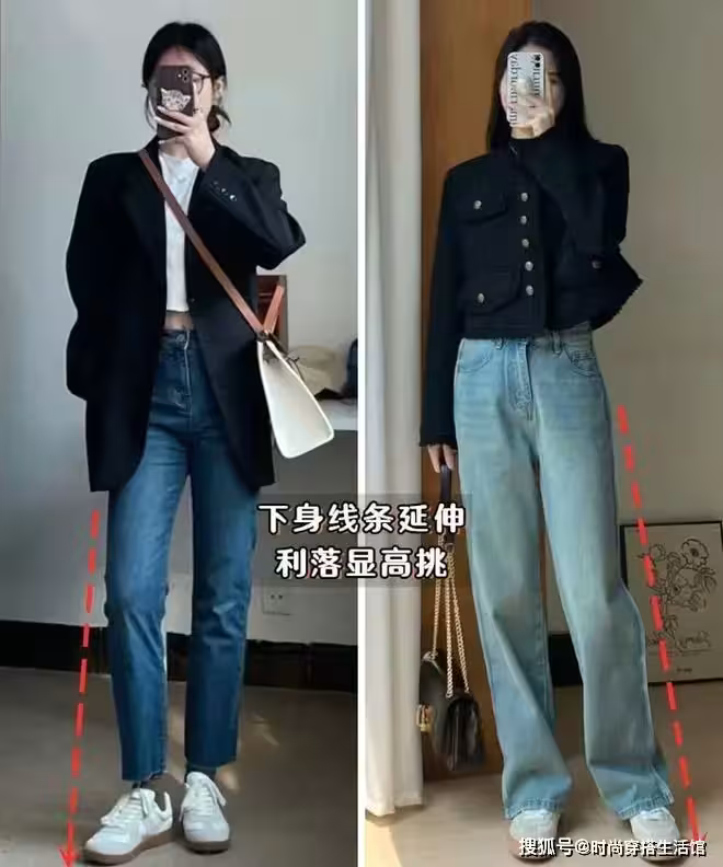 ⑵緊身褲暴露腿型,直筒褲包容腿型好駕馭