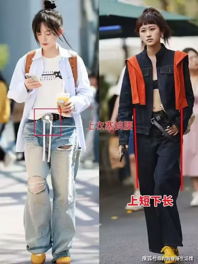 技巧①拉高腰線,選擇塞衣角和系腰帶