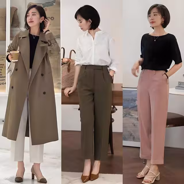 「上窄下寬」的梨形身材姐妹,很適合穿闊腿褲、煙管褲;腹部豐滿的蘋果型身材,可以通過錐形褲藏住贅肉;腰線明顯的沙漏型身材,穿修身西褲或九分褲,都能讓自己美得更出眾。