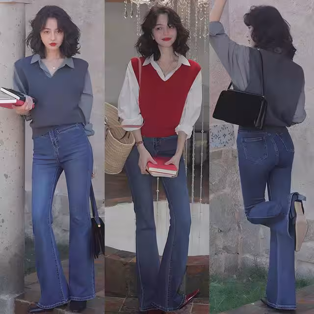 好身材都是穿出來的,一條「上窄下寬」的牛仔微喇褲,就能輕鬆優化下身曲線,刻畫出腰臀比,提升好氣質。