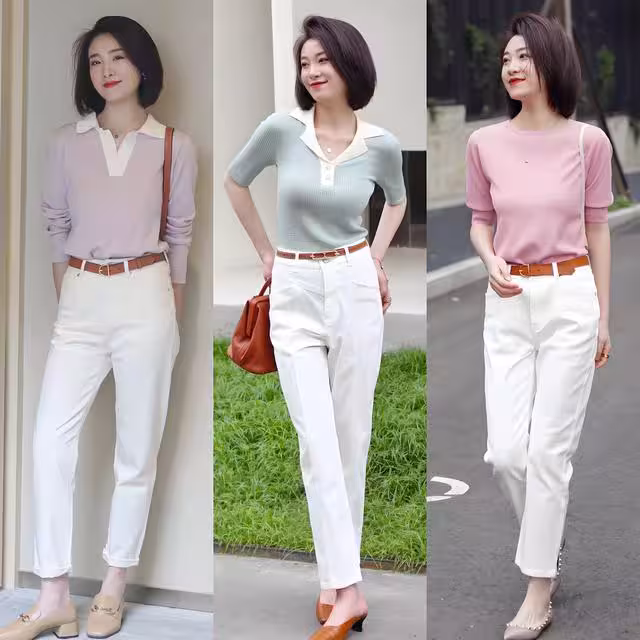 對於中年女人來說,不妨可以換成經典基礎色的長褲,例如黑色、白色、灰色、藏青色、米色等,都是中年女人的首選色,好看百搭不出錯。