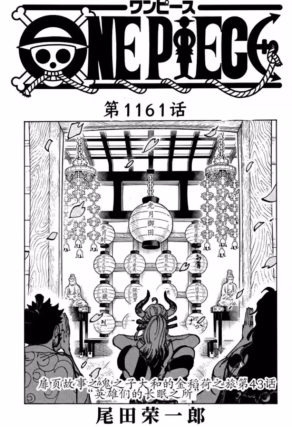 漫畫最新一話的標題是箭雨中結成的愛情之詩,扉頁小故事是大和拜祭光月御田,還有以藏,康家等人,這些人都是和之國的英雄。