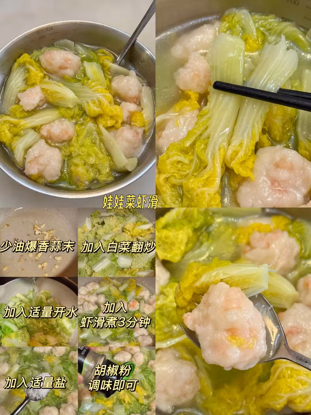 ✅第九款:娃娃菜蝦滑 準備食材:娃娃菜、蝦滑、蒜末 配料:食鹽、胡椒粉