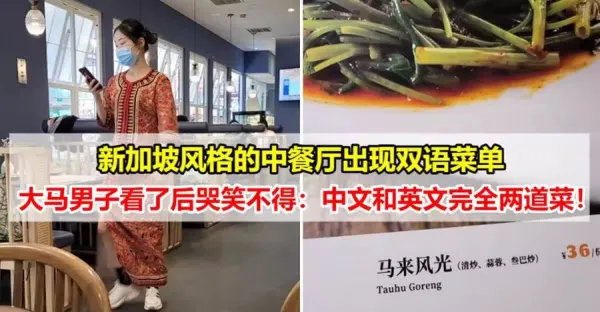 新加坡風格的中餐廳出現雙語菜單,大馬男子看了後哭笑不得:中文和英文完全兩道菜!