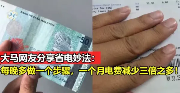 大馬網友分享省電妙法:每天多做一個步驟,一個月電費減少三倍之多