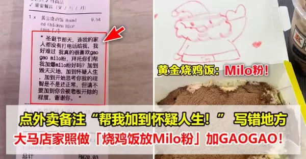 點外賣備註「幫我加到懷疑人生!」 寫錯地方!大馬店家照做「燒雞飯放Milo粉」加GAOGAO!