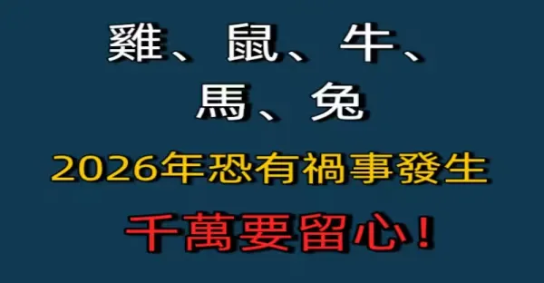 「雞、鼠、牛、馬、兔」2026年恐有禍事發生,千萬要留心!
