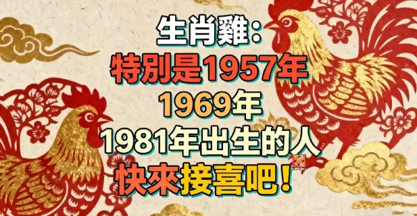 生肖雞:特別是1957年、1969年、1981年出生的人 快來接喜吧