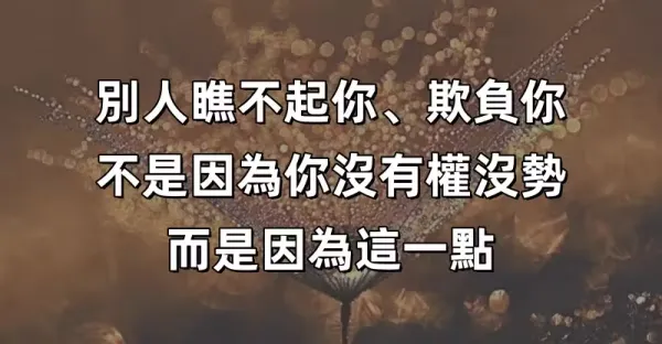 別人瞧不起你、欺負你,不是因為你沒權沒勢,而是因為這一點